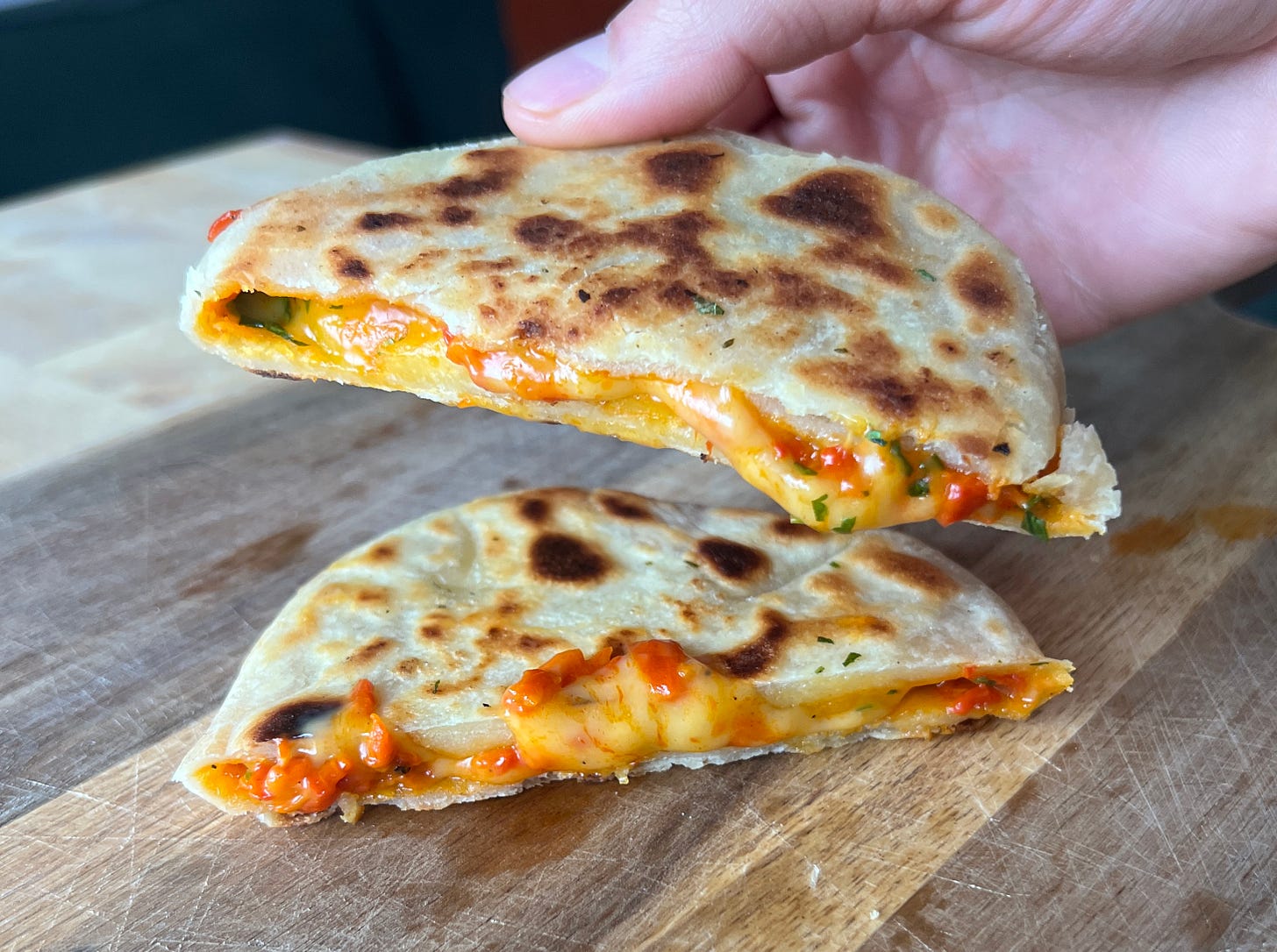 For me, the combination of a melty vegan cheese with the sweet, smoky, and vibrant ajvar is nothing short of a delight for the taste buds. It kind of feels like you’re holding a mini pocket sized pizza - and that’s a very enjoyable experience I must say…